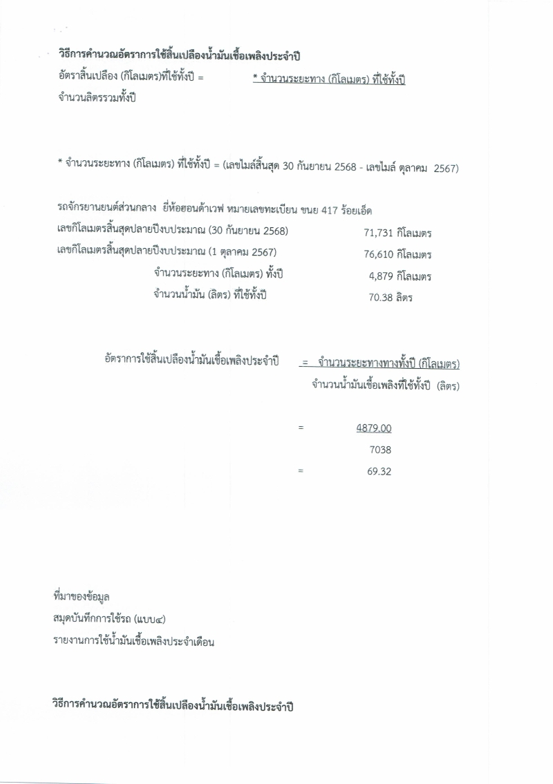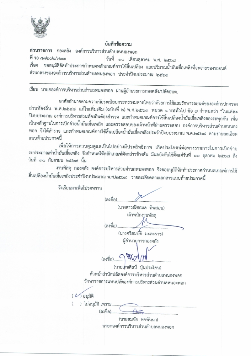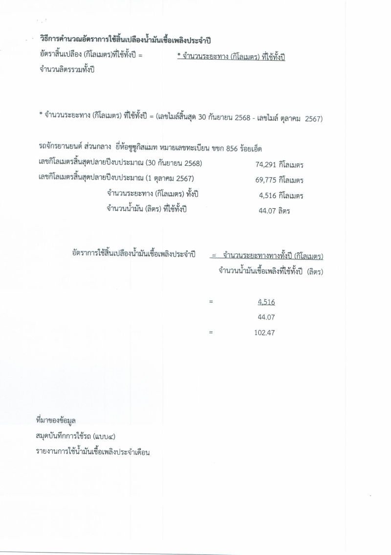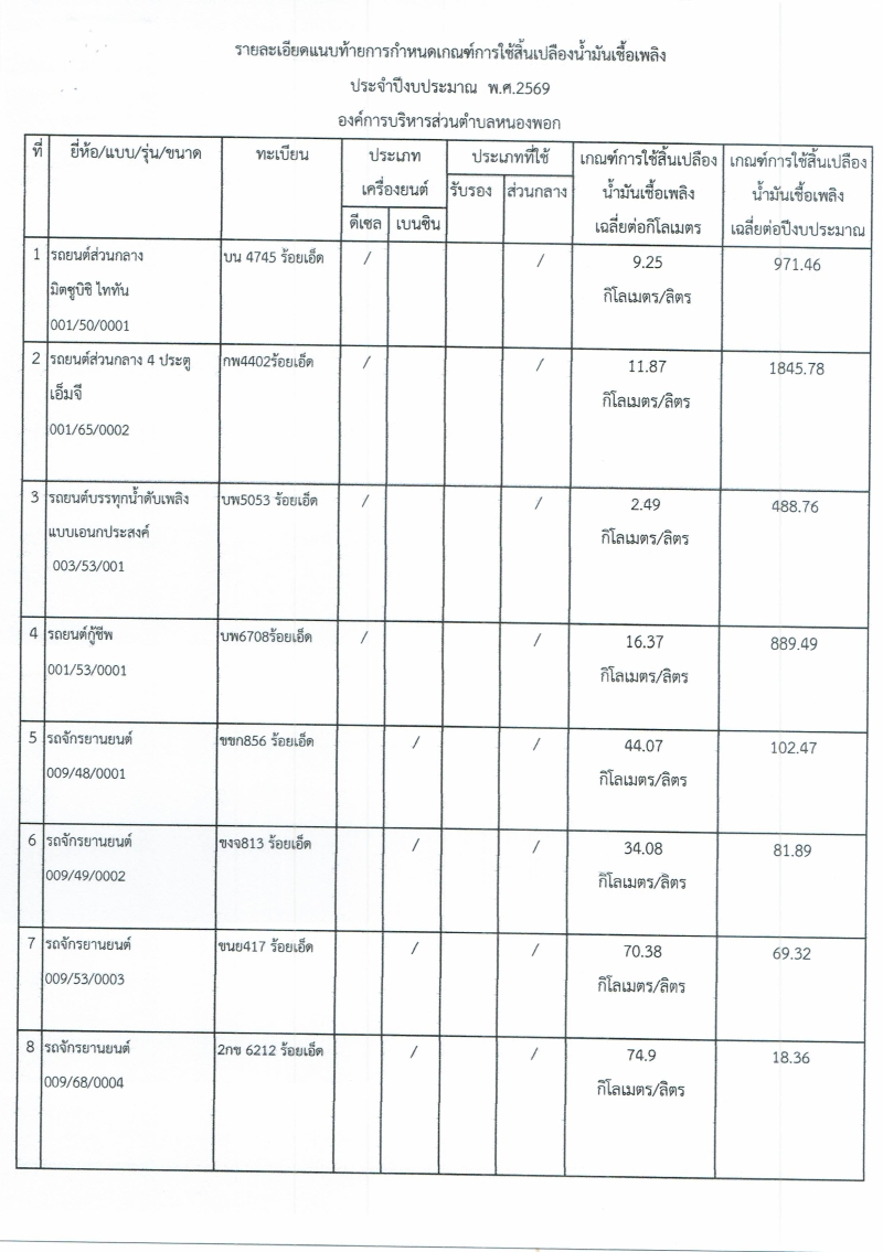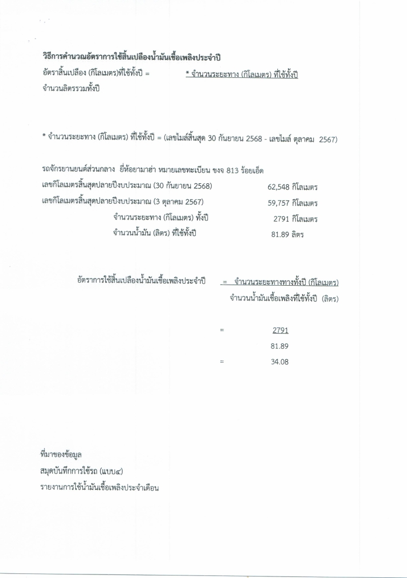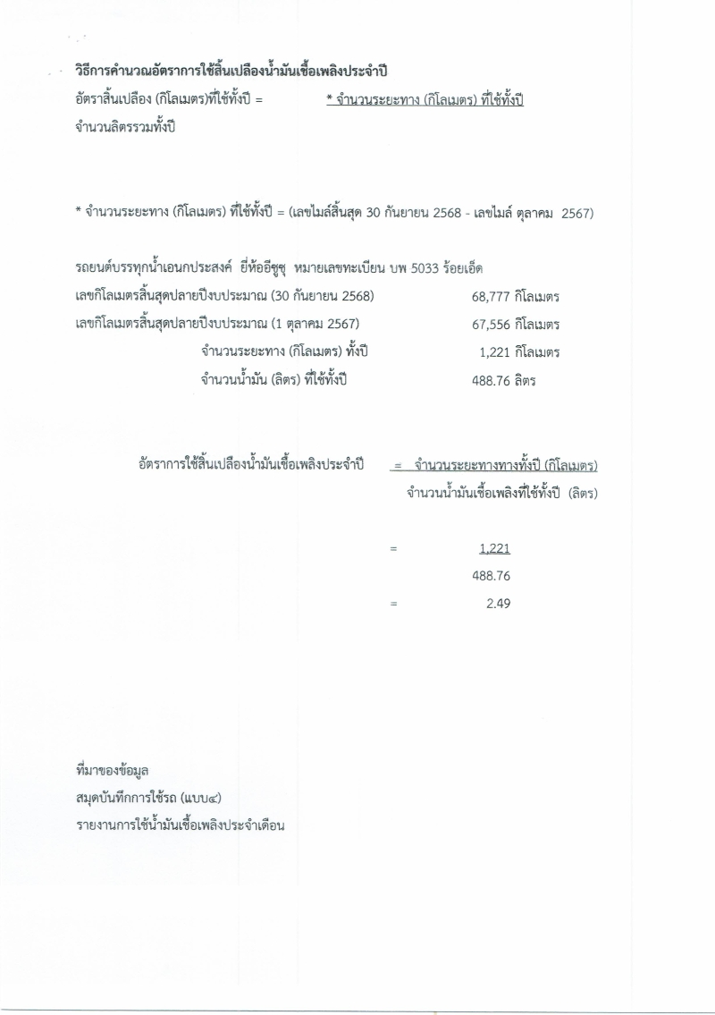 หัวข้อ :: เรื่อง การกำหนดเกณฑ์การใช้สิ้นเปลืองและปริมาณน้ำมันเชื้อเพลิงที่จะจ่ายของรถส่วนกลาง ประจำปีงบประมาณ 2569