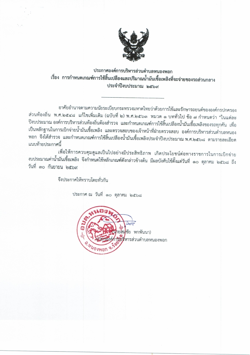 ประกาศองค์การบริหารส่วนตำบลหนองพอก